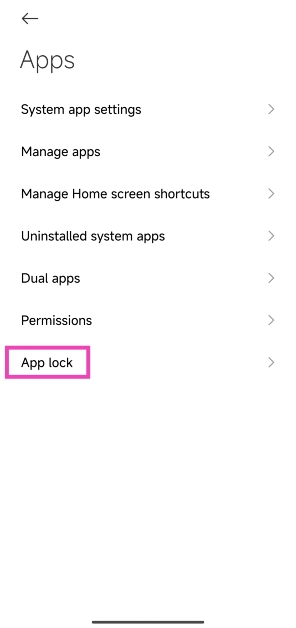 Εφαρμογές κλειδώματος σε ένα smartphone Xiaomi (MIUI/HYPEROS)