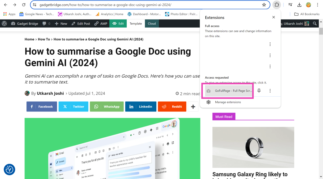 Εάν θέλετε να πάρετε ένα στιγμιότυπο οθόνης μιας πλήρους ιστοσελίδας, χρησιμοποιήστε την επέκταση GoFullPage.