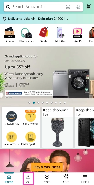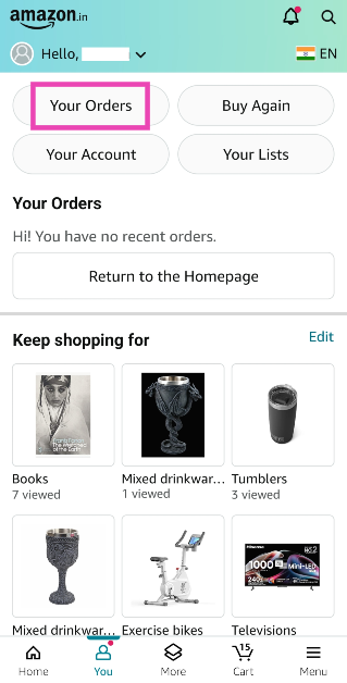 Βήμα 1: Εκτόξευσητην εφαρμογή Amazon στο smartphone σας και μεταβείτε στοΚαρτέλα.