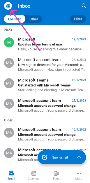 Βήμα 2:Κάντε κλικ στοεικονίδιο βέλους στη συνέχειαστον λογαριασμό email σας.