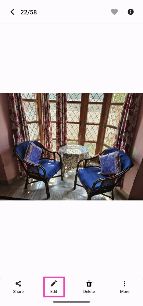 Βήμα 1:Ανοίξτε την εικόνα που θέλετε να θολώνετε στην εφαρμογή της γέφυρας Samsung και χτυπήστε τοΕκδίδωεπιλογή στο κάτω μέρος της οθόνης.