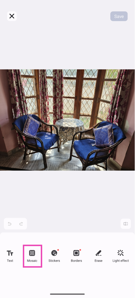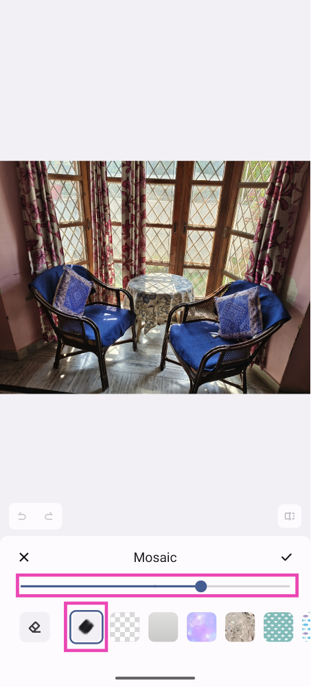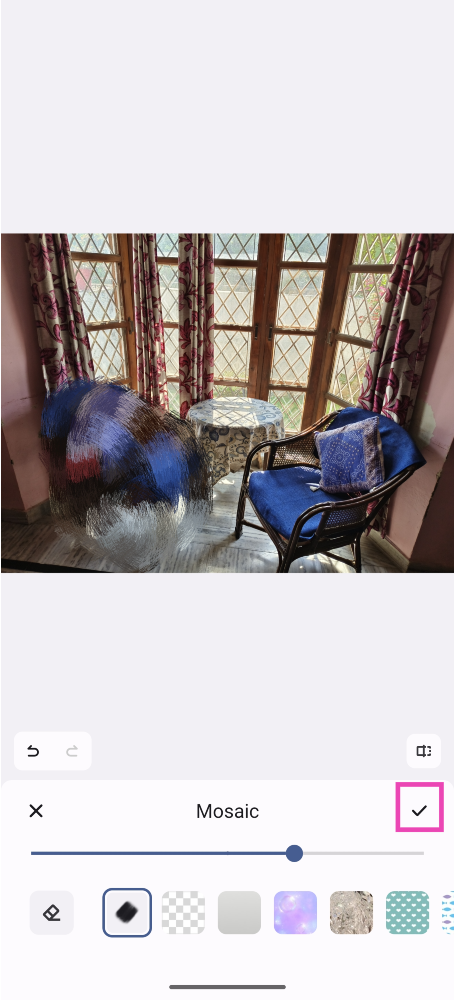 Χρησιμοποιήστε το εργαλείο βούρτσας μωσαϊκού για να θολώσετε ένα μέρος μιας εικόνας στο smartphone Android. Επιλέξτε το κατάλληλο επίπεδο θολώματος και ένταση από τη λίστα των επιλογών.
