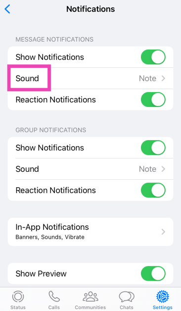 Ξεκινήστε το WhatsApp, μεταβείτε στοΡυθμίσεις> Ειδοποιήσεις> Ήχοςκαι επιλέξτε έναν νέο τόνο.