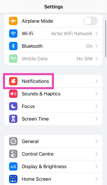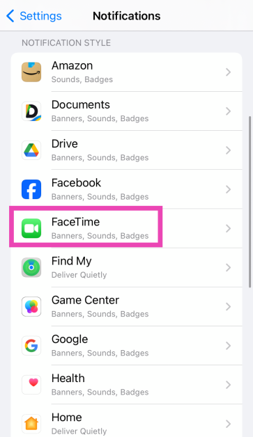 Βήμα 2:Μετακινηθείτε προς τα κάτω και επιλέξτε την εφαρμογή για την οποία θέλετε να ορίσετε έναήχος προσαρμοσμένης ειδοποίησης. Μπορείτε να αλλάξετε μόνο τον ήχο ειδοποίησης για τη σουίτα εφαρμογών της Apple.
