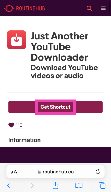 Βήμα 1:Κατεβάστε τοΑκριβώς ένα άλλο downloader του YouTube(Jayd) Συντόμευση στο iPhone σαςΧρησιμοποιώντας αυτόν τον σύνδεσμο.