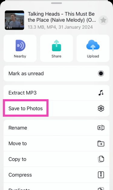 Βήμα 9:ΕπιλέγωΑποθήκευση σε φωτογραφίεςΓια να μετακινήσετε το βίντεο σεΚυλίνδρος κάμερας.