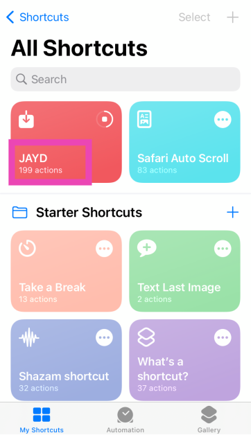 Βήμα 4:Εκκινήστε τοΣυντομεύσειςApp και πατήστε στο Jayd.