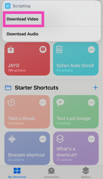 Ο ευκολότερος τρόπος για να κατεβάσετε τα βίντεο του YouTube στο iPhone σας χρησιμοποιώντας τη συντόμευση Jayd. Αυτή η συντόμευση απαιτεί να εγκαταστήσετε την εφαρμογή Scriptable στο iPhone σας για σωστή λειτουργία. Μόλις ληφθεί το Scriptable, αντιγράψτε τον σύνδεσμο βίντεο YouTube και πατήστε τη συντόμευση Jayd για να ξεκινήσετε τη λήψη.