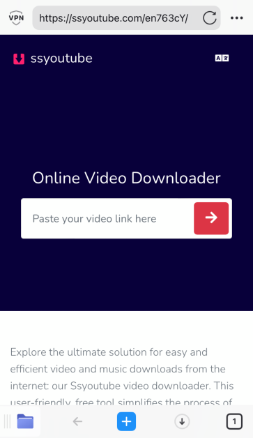 Βήμα 4:Μεταβείτε στοκαρτέλα προγράμματος περιήγησηςκαι πηγαίνετε στοδικτυακός τόποςΑυτό ειδικεύεται στη λήψη βίντεο YouTube. Το Ssyoutube και το PastEdownload είναι καλά παραδείγματα.