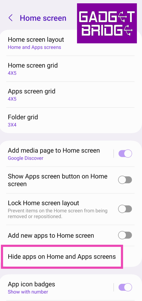 Βήμα 2:ΕπιλέγωΑπόκρυψη εφαρμογών στις οθόνες Home and Apps.