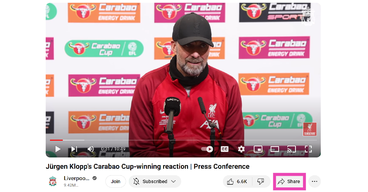 Στον υπολογιστή, πατήστε το κουμπί "Share" για το βίντεο και σημειώστε το πλαίσιο για το "Start at". Αναφέρετε την ώρα κατά την οποία θέλετε να ξεκινήσει το βίντεο και να το μοιραστείτε στην πλατφόρμα της επιλογής σας.