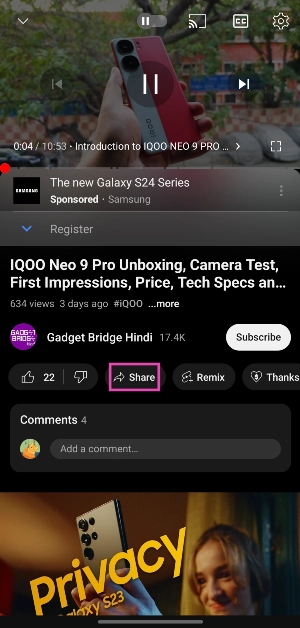 Δεν υπάρχει άμεσος τρόπος να μοιραστείτε ένα timestamped βίντεο από την εφαρμογή για κινητά στο YouTube. Ωστόσο, υπάρχει ένα τέχνασμα που μπορείτε να χρησιμοποιήσετε για να περάσετε γύρω από αυτό το οδόφραγμα.