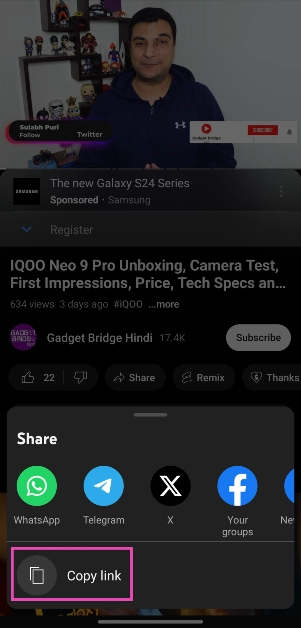 Βήμα 4:Κλικ στοΑντιγράψτε τη διεύθυνση URL βίντεοστην τρέχουσα χρονική στιγμή.