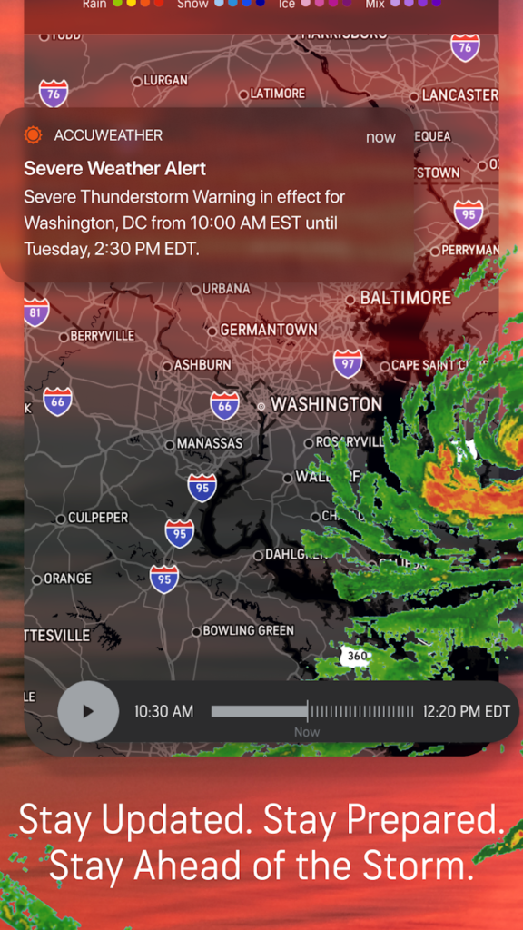 Οι έγκαιρες προειδοποιήσεις σχετικά με τις έντονες καιρικές συνθήκες αποτελούν ζωτικό χαρακτηριστικό οποιασδήποτε εφαρμογής καιρού. Αυτές οι ειδοποιήσεις μπορεί να είναι η διάσωση σε καταστάσεις έκτακτης ανάγκης.