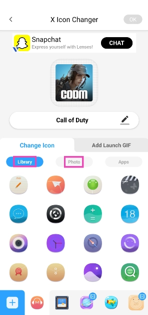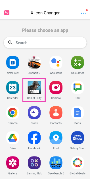 Κάντε λήψη της εφαρμογής changer X και επιλέξτε την εφαρμογή που θέλετε να προσαρμόσετε από τη λίστα. Μπορείτε να επιλέξετε μια εικόνα από τη γκαλερί του τηλεφώνου σας για το εικονίδιο της εφαρμογής ή να επιλέξετε από τη βιβλιοθήκη του Icon Changer. Πατήστε το όνομα της εφαρμογής για να την αλλάξετε.