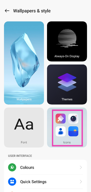 Αλλάξτε το πακέτο εικονιδίων στο OnePlus
