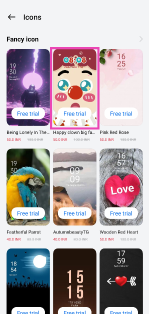 Βήμα 4:Επιλέξτε έναεικονίδιοαπό τη λίστα. Ορισμένες από τις επιλογές ενδέχεται να απαιτούν μικρή πληρωμή.