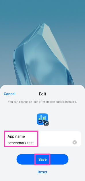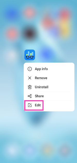 Μεγάλο μέρος του εικονιδίου της εφαρμογής και πατήστε 'Επεξεργασία'. Πατήστε το εικονίδιο εφαρμογής για να το επεξεργαστείτε. Πατήστε το όνομα της αλλαγής και εισαγάγετε ένα νέο. Χτυπήστε το 'Save'.