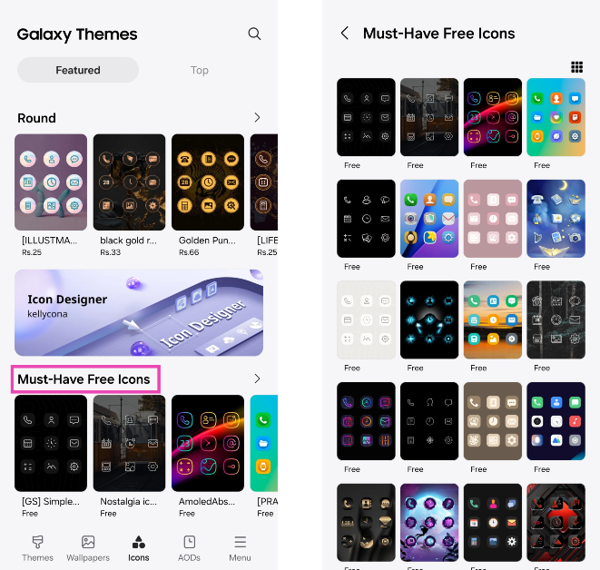 Η διαδικασία αλλαγής του εικονιδίου και του ονόματος της εφαρμογής σε συσκευές Android διαφέρει σημαντικά μεταξύ των κατασκευαστών. Ενώ το OnePlus Smartphones προσφέρει έναν εγγενή τρόπο για να αλλάξετε το όνομα μιας εφαρμογής, αυτή η επιλογή δεν υπάρχει στις συσκευές Samsung. Ωστόσο, κάθε κατασκευαστής διαθέτει μια διαφορετική βιβλιοθήκη πακέτων εικονιδίων για τις εγγενείς εφαρμογές του. Αυτά τα πακέτα εικονιδίων μπορούν να μεταφορτωθούν από την ενότητα "Θέματα" στο τηλέφωνό σας.