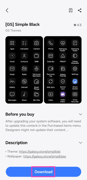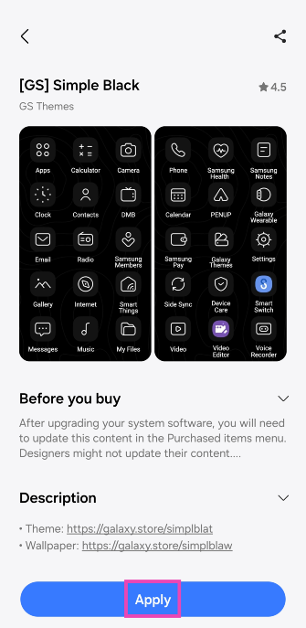 Το πακέτο εικονιδίων εφαρμογών θα εφαρμοστεί σε όλες τις εγγενείς εφαρμογές Samsung στο τηλέφωνό σας.