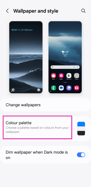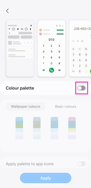 ΠηγαίνωΡυθμίσεις> Ταπετσαρία και στυλ> χρωματική παλέταΚαι ενεργοποιήστε τους διακόπτες εναλλαγής για την «χρωματική παλέτα» και το «εφαρμόστε παλέτα σε εικονίδια εφαρμογών». Επιλέξτε ένα χρώμα από τη λίστα.