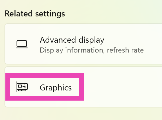 Βήμα 3:Μετακινηθείτε προς τα κάτω και κάντε κλικ στοΓραφικάυπόΣχετικές ρυθμίσεις.