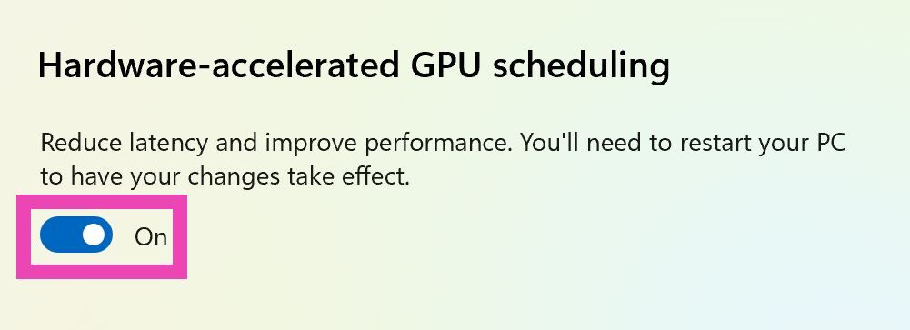 Βήμα 4:Ενεργοποιήστε ή απενεργοποιήστε το διακόπτη εναλλαγήςΠρογραμματισμός GPU με επιτάχυνση υλικού.