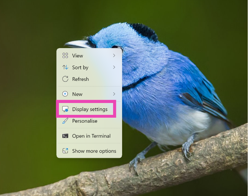 Βήμα 1:Κάντε δεξί κλικ στην επιφάνεια εργασίας και επιλέξτεΡυθμίσεις εμφάνισης.