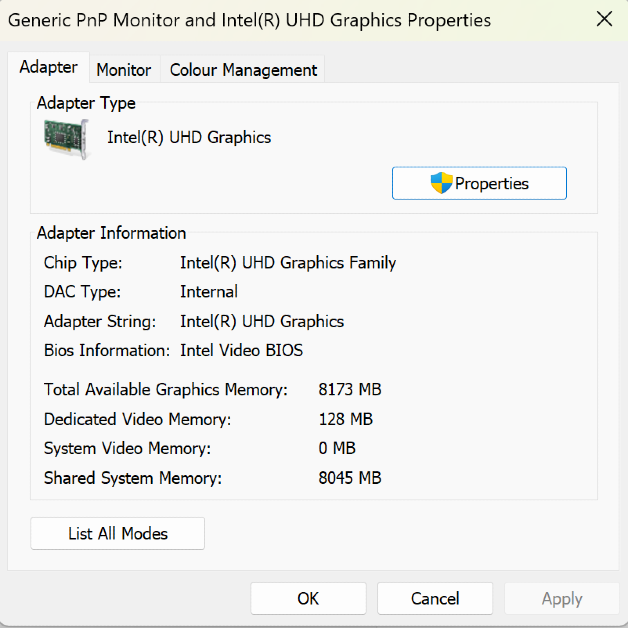 Βήμα 3:Κλικ στοΕμφάνιση ιδιοτήτων προσαρμογέα για την οθόνη 1.