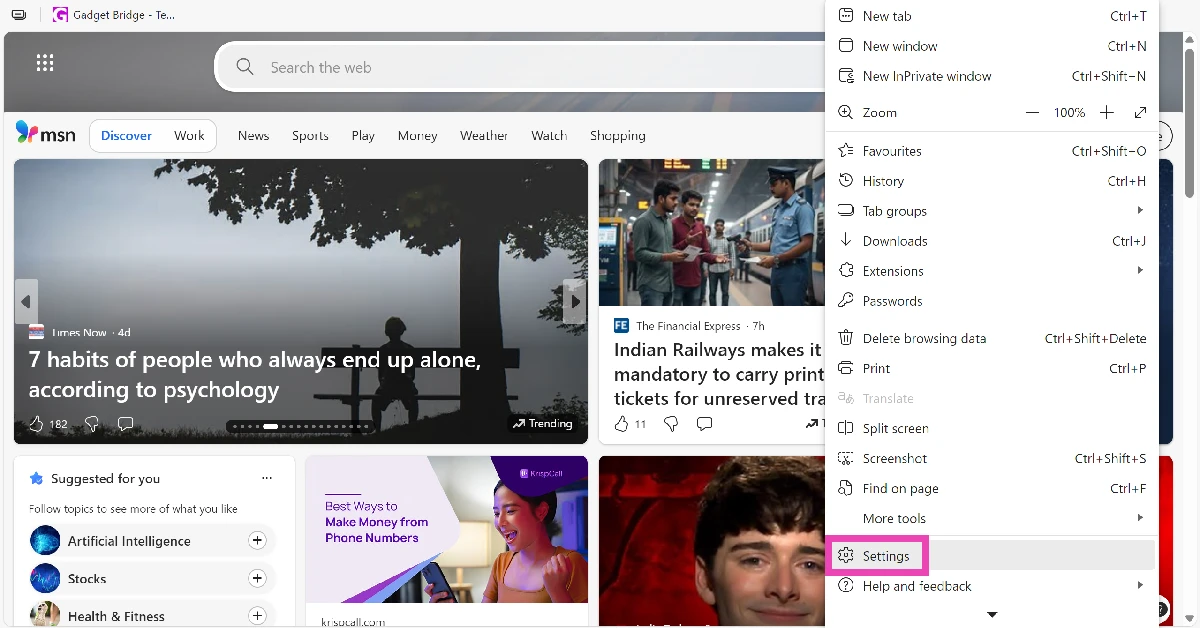 Βήμα 1: ΕκτόξευσηMicrosoft Edgeστον υπολογιστή σας και πατήστε τοελλείψειςστην επάνω δεξιά γωνία της οθόνης.
