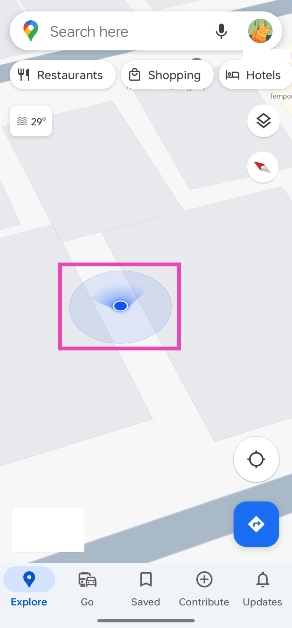 Βήμα 2:Χτυπήστε τοΠιο πρόσφατο εικονίδιοΚαι βεβαιωθείτε ότι ο μπλε κύκλος τοποθετείται στην τοποθεσία σας.