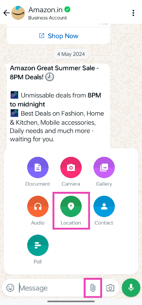 Βήμα 2:Χτυπήστε τοεικονίδιο προσκόλλησηςστο πλαίσιο μηνυμάτων και επιλέξτεΤοποθεσία.