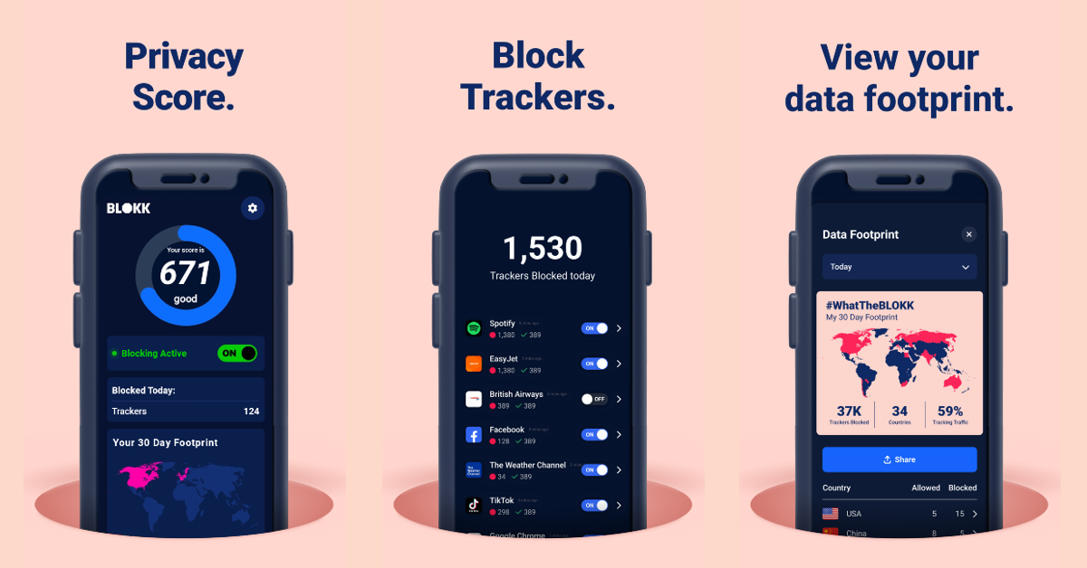 είναι μία από τις καλύτερες εφαρμογές που μπορείτε να χρησιμοποιήσετε για να αποτρέψετε άλλες εφαρμογές στο τηλέφωνό σας από την παρακολούθηση των δεδομένων σας. Αυτή η εφαρμογή σας δίνει μια ανάλυση σε πραγματικό χρόνο για τον αριθμό των ιχνηλάτων που έχει μπλοκάρει από τις εγκατεστημένες εφαρμογές στη συσκευή σας. Εάν προσγειωθείτε σε έναν ιστότοπο απάτης, το Blokk σας στέλνει μια γρήγορη ειδοποίηση για να σας ενημερώσει για την κακόβουλη πρόθεση. Μπορείτε να τοποθετήσετε ορισμένες εφαρμογές σε μια λίστα λευκών και ακόμη και να αποκλείσετε με μη αυτόματο τρόπο ορισμένους ιχνηλάτες από την προσκόλληση στα δεδομένα σας.