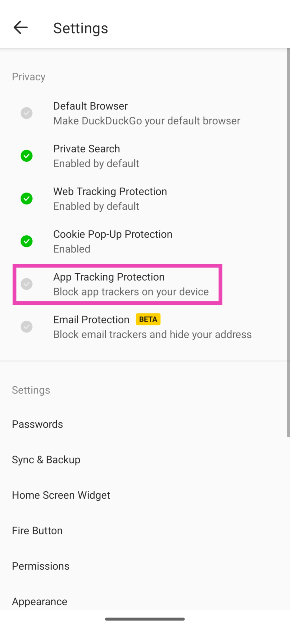 Πώς μπορώ να ενεργοποιήσω την προστασία της παρακολούθησης εφαρμογών στο DuckDuckgo;