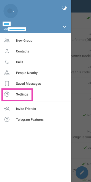 Βήμα 1:Εκκίνηση τηλεγράφημα και πατήστε τοΜενού χάμπουργκερΣτην επάνω αριστερή γωνία της οθόνης.