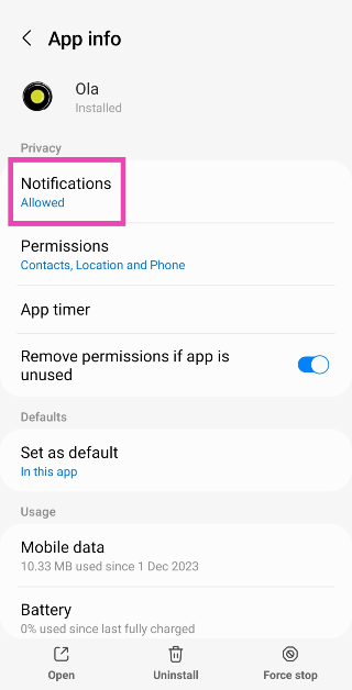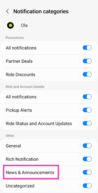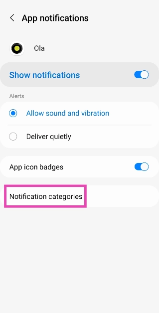 Βήμα 4:Βεβαιωθείτε ότι ο διακόπτης εναλλαγήςΕιδοποιήσεις εμφάνισηςενεργοποιείται και πατήστεΚατηγορίες ειδοποίησης.