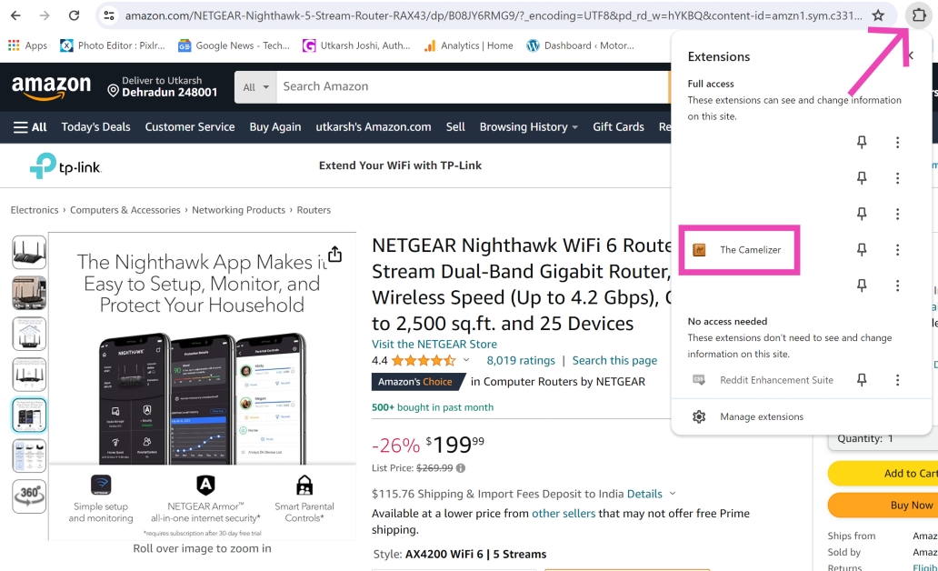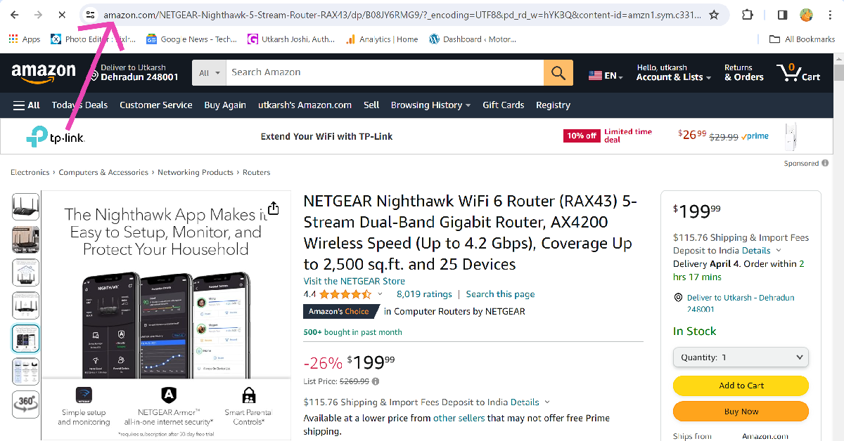 Βήμα 2:Τώρα, πηγαίνετε στο Amazon και περιηγηθείτε στοσελίδατου προϊόντος που ψάχνετε να αγοράσετε.