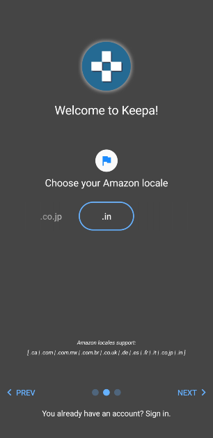 Βήμα 2: Εκτόξευσηη εφαρμογή. Επιλέξτε το δικό σαςγλώσσακαιAmazon Locale.