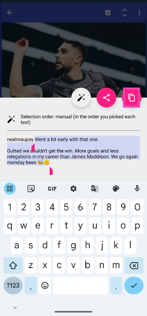 Βήμα 5:Η εφαρμογή Universal Copy θα σας επιτρέψει να επιλέξετε οποιοδήποτε κείμενο που θέλετε στην εφαρμογή.Αποκορύφωμαη λεζάντα καιαντίγραφοστο πρόχειρο.