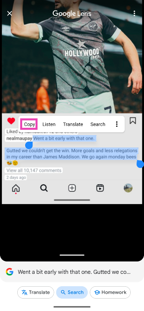 Βήμα 3:Στην κάρτα του Instagram,μακρύς Τύποςτο κείμενο που επιθυμείτε να αντιγράψετε.