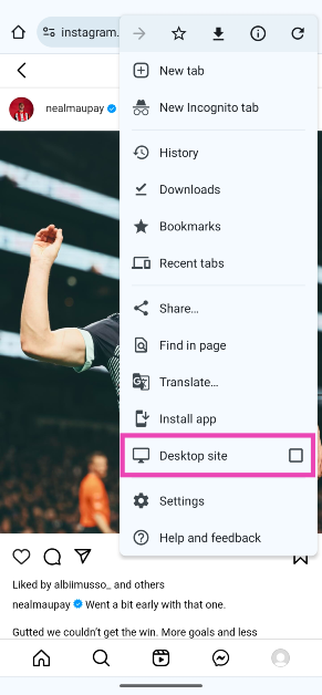 Αντιγράψτε σχόλια Instagram χρησιμοποιώντας τη λειτουργία επιφάνειας εργασίας στο Chrome (Android και iOS)