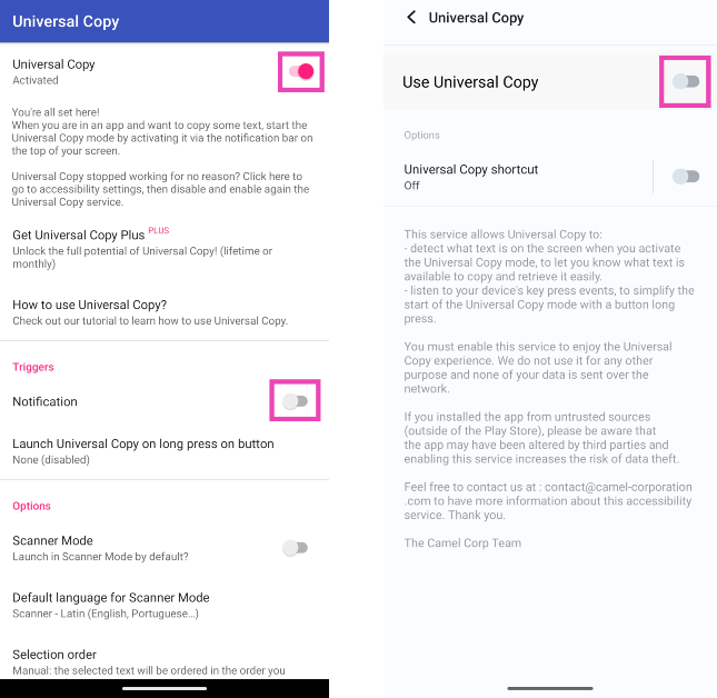 Εγκαταστήστε την εφαρμογή Universal Copy στη συσκευή σας, δώστε της τα απαραίτητα δικαιώματα και ενεργοποιήστε το "Χρήση Universal Copy". Μεταβείτε στη δημοσίευση Instagram και επιλέξτε 'Activate Universal Copy Mode' από τον πίνακα ειδοποίησης. Επισημάνετε το σχόλιο ή τη λεζάντα και αντιγράψτε το κείμενο στο πρόχειρο.
