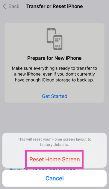 ΠηγαίνωΡυθμίσεις> Γενικά> Trasnfer ή Reset iPhone> Επαναφορά> Επαναφορά διάταξης αρχικής οθόνης> Επαναφορά Αρχική οθόνηκαι επιβεβαιώστε την επιλογή σας.