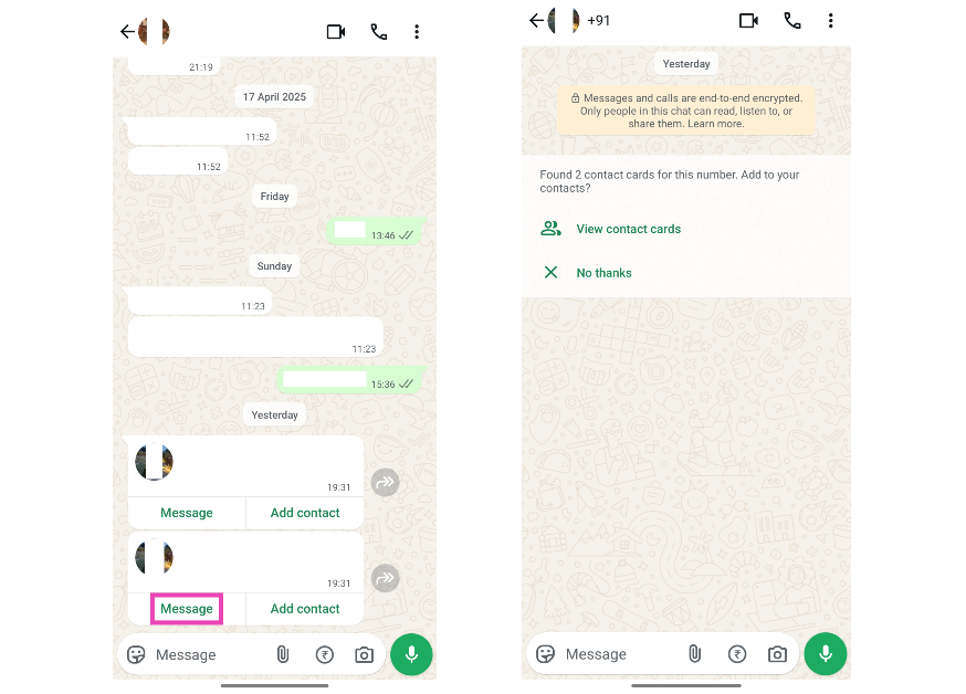Βήμα 3:Ένα νέο νήμα συνομιλίας θα ανοίξει στην εφαρμογή WhatsApp, όπου μπορείτεαποστολή μηνυμάτωνστον μη αποθηκευμένο αριθμό.