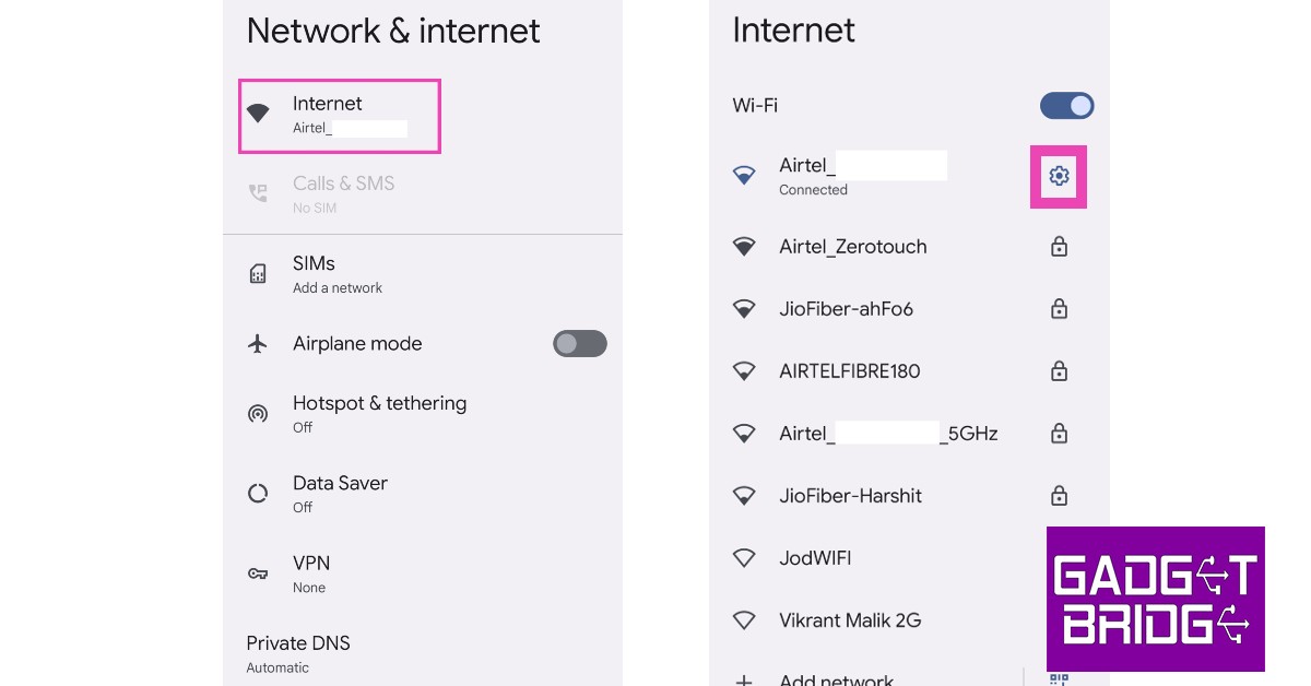 Βήμα 2:ΕπιλέγωWifiκαι πατήστε στοεικονίδιο γρανάζιΔίπλα στο δίκτυο WiFi στο οποίο συνδέεστε.