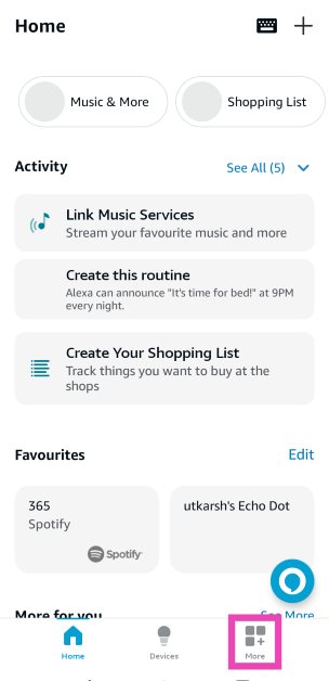 Βήμα 1:Εκτόξευσητην εφαρμογή Amazon Alexa στο τηλέφωνό σας και μεταβείτε στοΠερισσότεροαυτί.