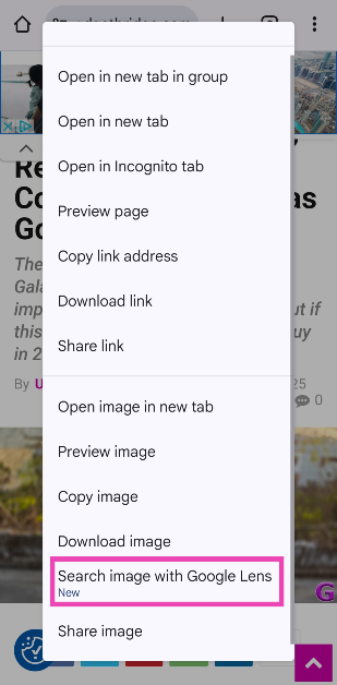 Βήμα 2:Πιέστε μακρά την εικόνα και επιλέξτεΕικόνα αναζήτησης με φακό Google.