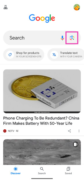 Βήμα 1: Εκτόξευσητην εφαρμογή Google στο smartphone σας και πατήστε τοεικονίδιο κάμερας.