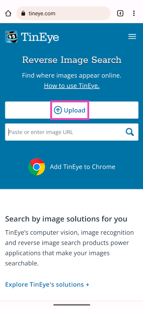 Βήμα 1: ΕκτόξευσηGoogle Chrome και πηγαίνετε στοhttps://tineye.com/.