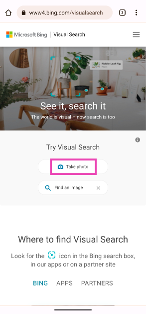 Βήμα 1: ΕκτόξευσηGoogle Chrome στο smartphone σας και μεταβείτε στην Bing Visual Search.